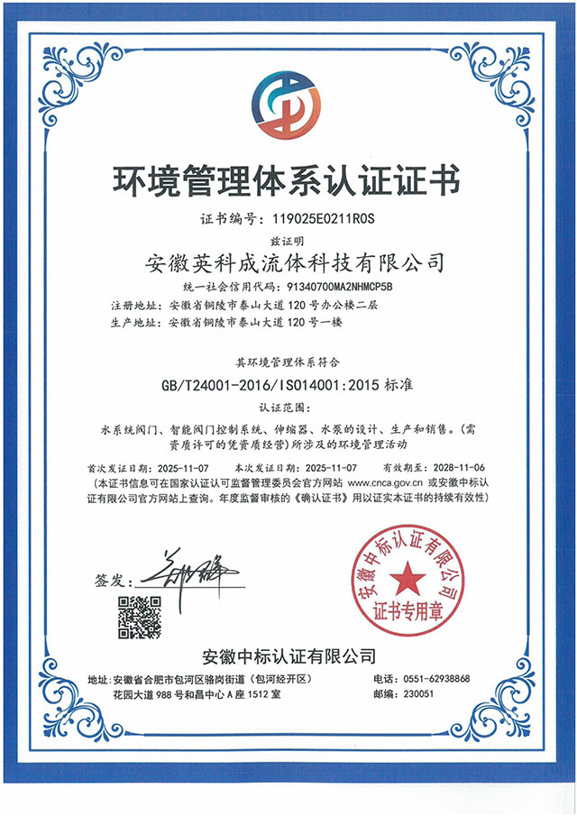 當前位置:首頁 > 榮譽資質 > 環境管理體系認證證書